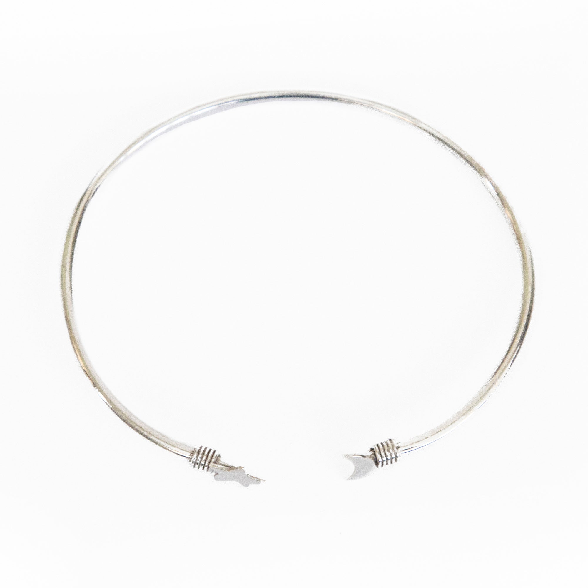 Simple and stylish, this heart cuff bracelet with silver matte finish is delicate enough to wear alone or layered to make a statement. Star and Moon accents measure approximately 1/3 inch. Slightly adjustable size. Interior diameter is approximately 2.5-inches wide. Brass, Silver plate finish. The story behind the art: Reimagining the aesthetics of sustainable, ethical fashion, this collection of jewelry is handmade by artisans in village communities in India, often times using eco-friendly materials.